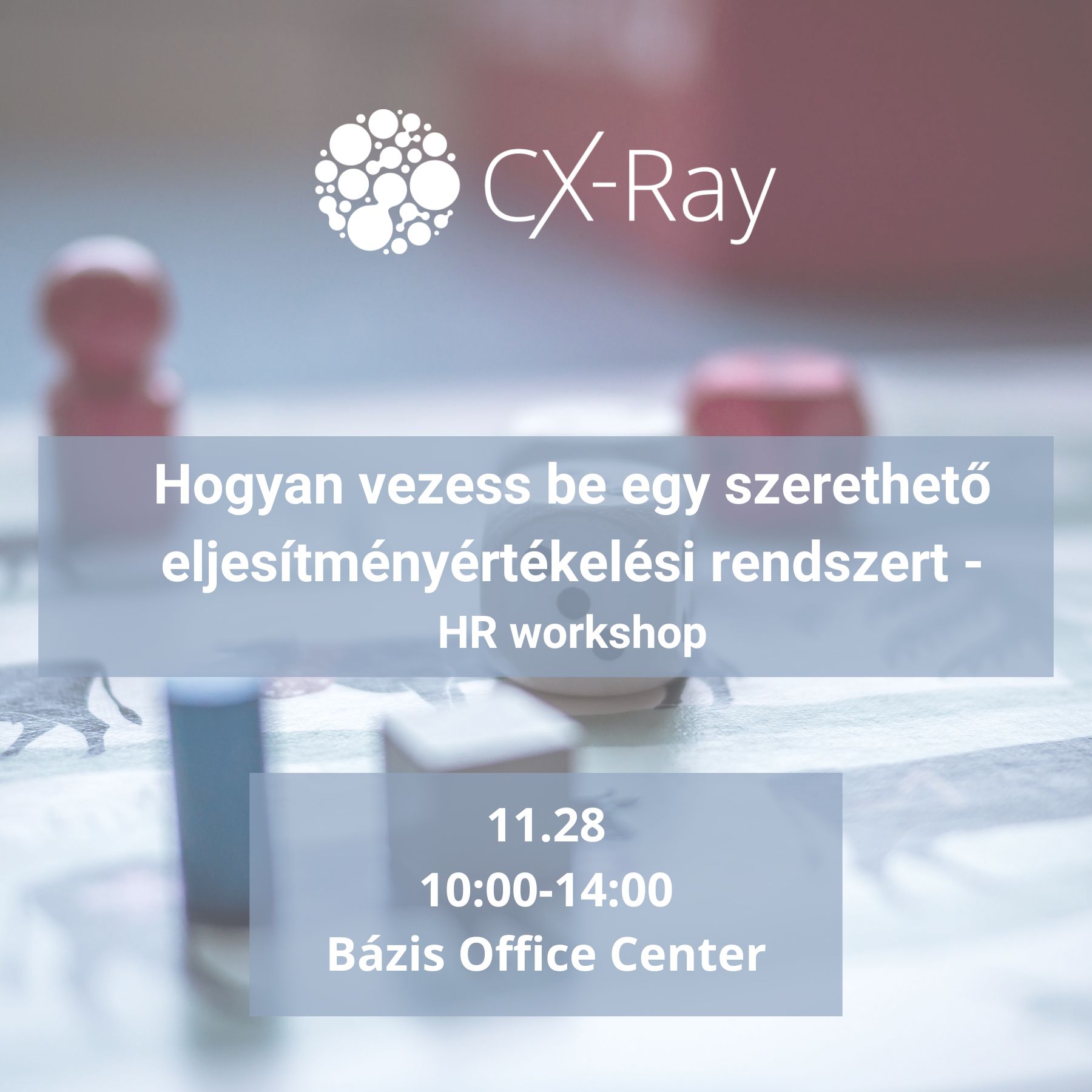 Teljesítményértékelés workshop vállalati HR szakemberek részére 2024.11.28-án 10:00-14:00 között a CX-Ray szervezésében. Helyszín: 1027 Budapest, Horváth u. 14-24, Bázis office center